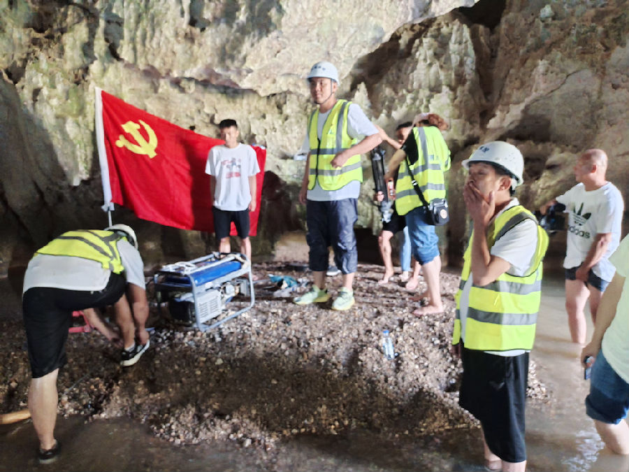 通過努力尋找,終于在距斷杉鎮(zhèn)青藤村水頭寨約1公里的山洞中發(fā)現(xiàn)了一股不小的清泉。為及時解決飲用水源不足的問題,8月25日上午,水投公司組織黨員干部及恒通供排水公司斷杉供水服務(wù)中心的員工抬上笨重的發(fā)電機等設(shè)備翻山越嶺進入山洞,插上黨旗后,就忙著改接管道。施工要蹚過某段深水區(qū),同志們的鞋褲打濕了也不在乎,洞內(nèi)光線暗就用手機照明。有的接管,有的試機,分工明確,在大家共同協(xié)作下成功發(fā)電抽水!